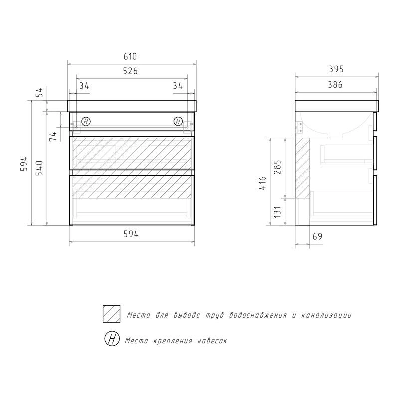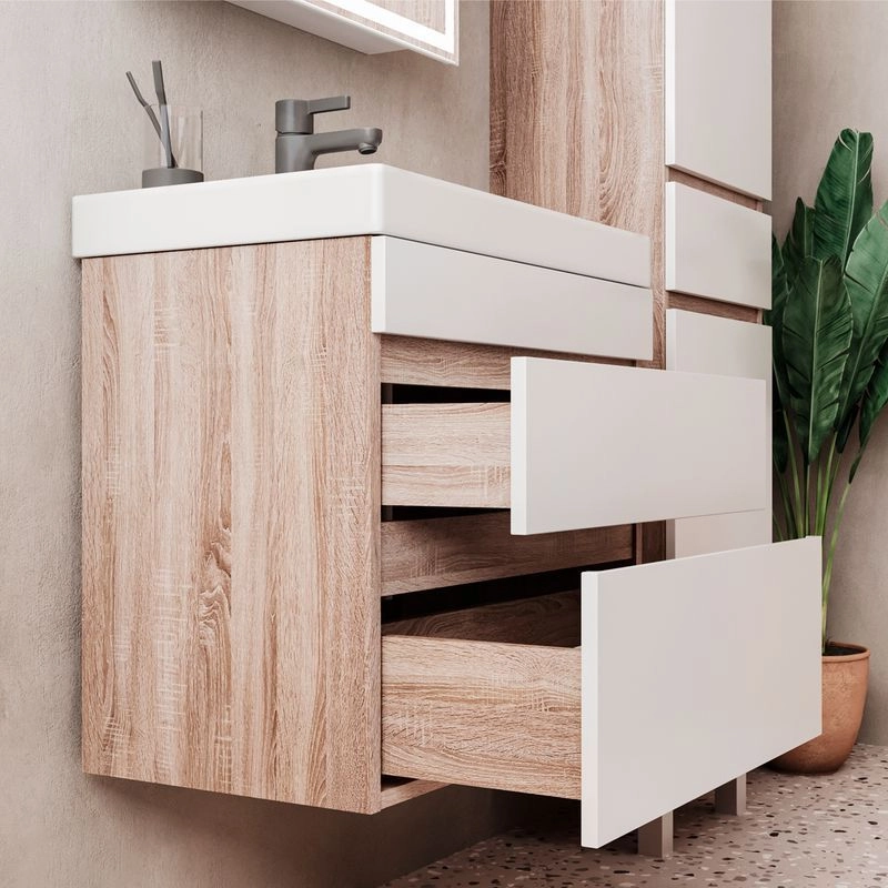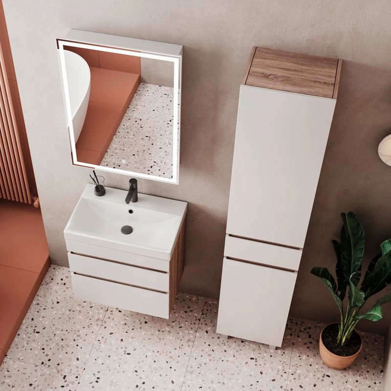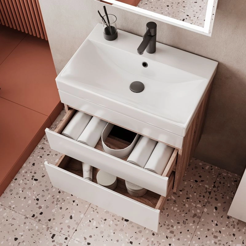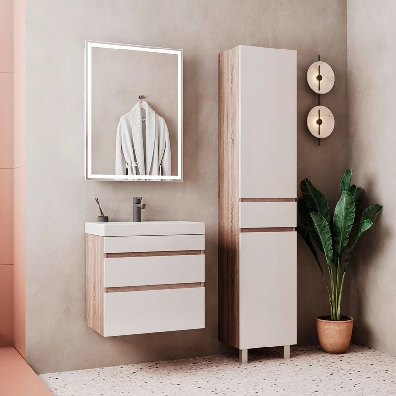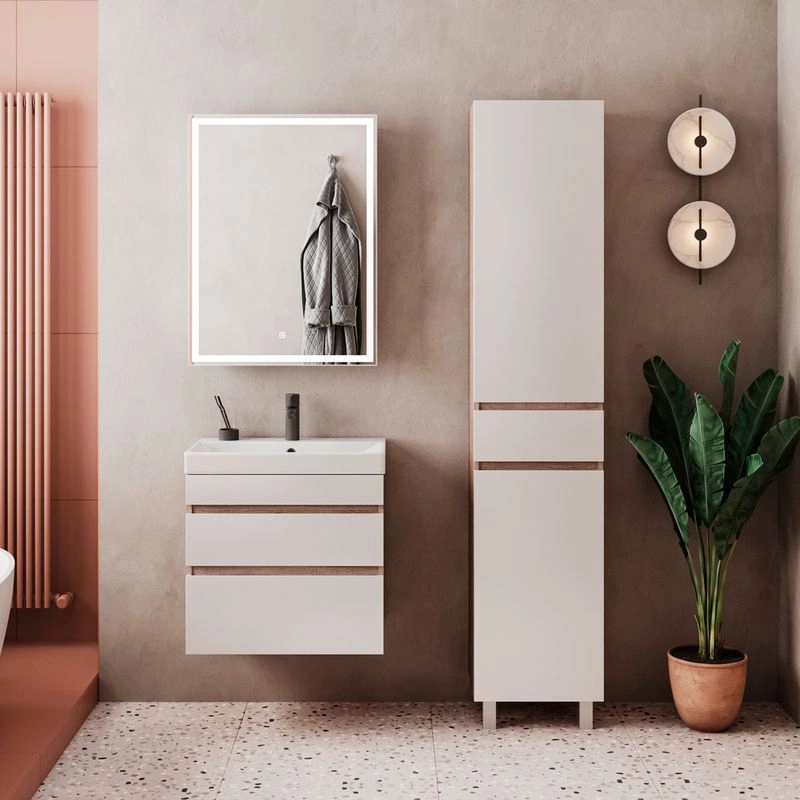 —Тумба для ванной Volna Conty 60.2Y Белый/дуб сонома подвесная (9696) раковина отдельно