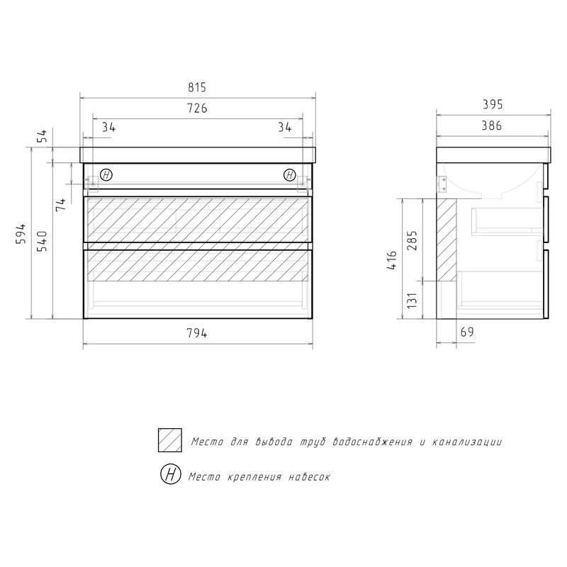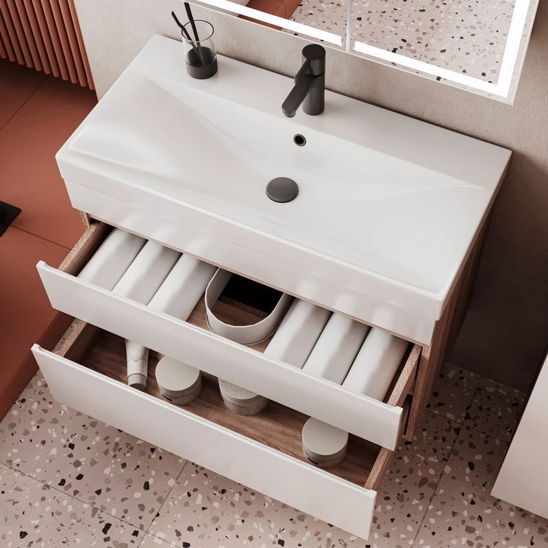 —Тумба для ванной Volna Conty 80.2Y Белый/дуб сонома подвесная (9696) раковина отдельно