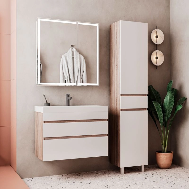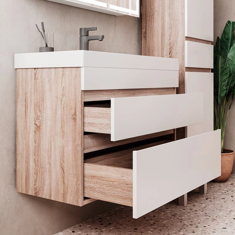 Тумба для ванной Volna Conty 80.2Y Белый/дуб сонома подвесная (9696) раковина отдельно