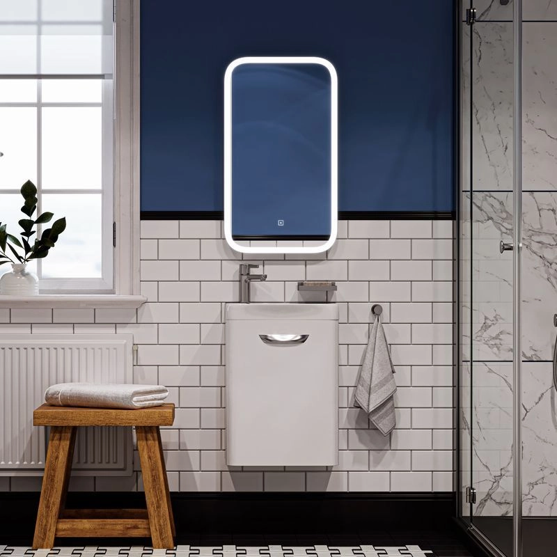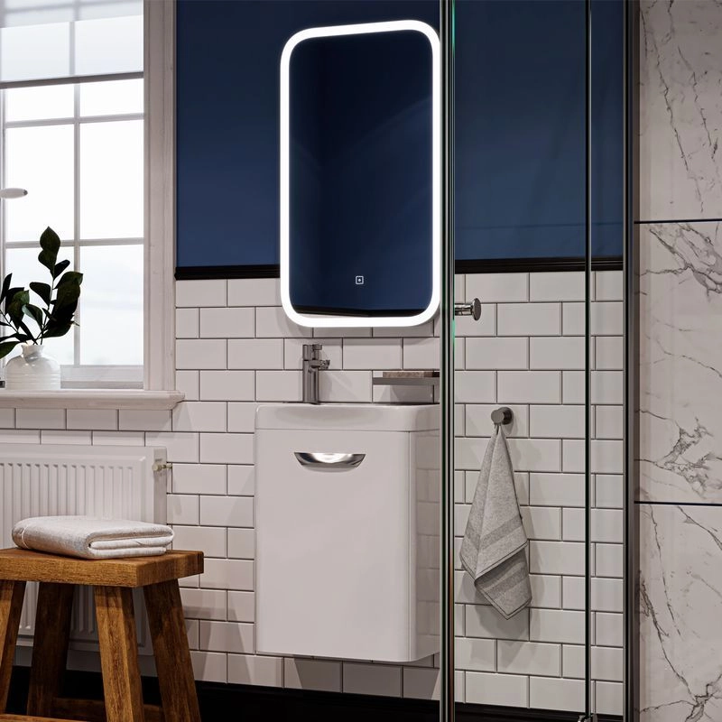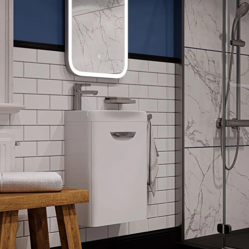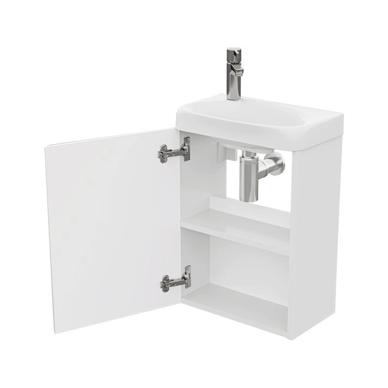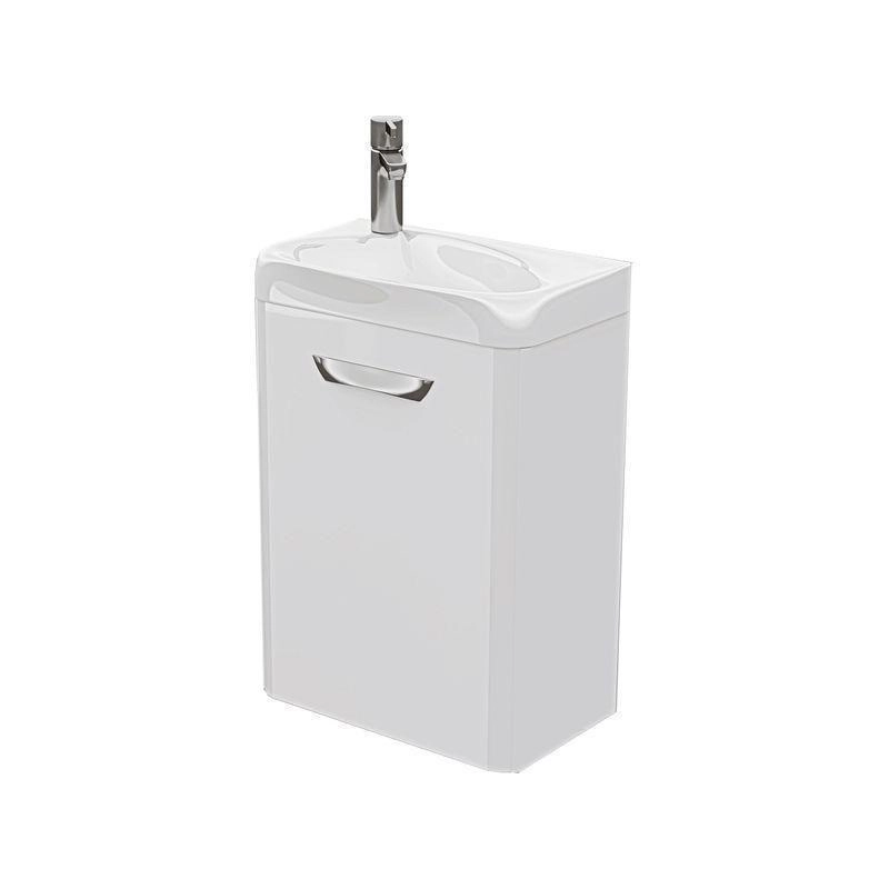 Подвесная тумба с полкой из ЛДСП за распашной дверцей.Петли на дверце с доводчиками. Фасад и боковины тумбы изготовлены из МДФ и облицованы глянцевой пленкой ПВХ. Тумба открывается при помощи глянцевой металлической ручки.