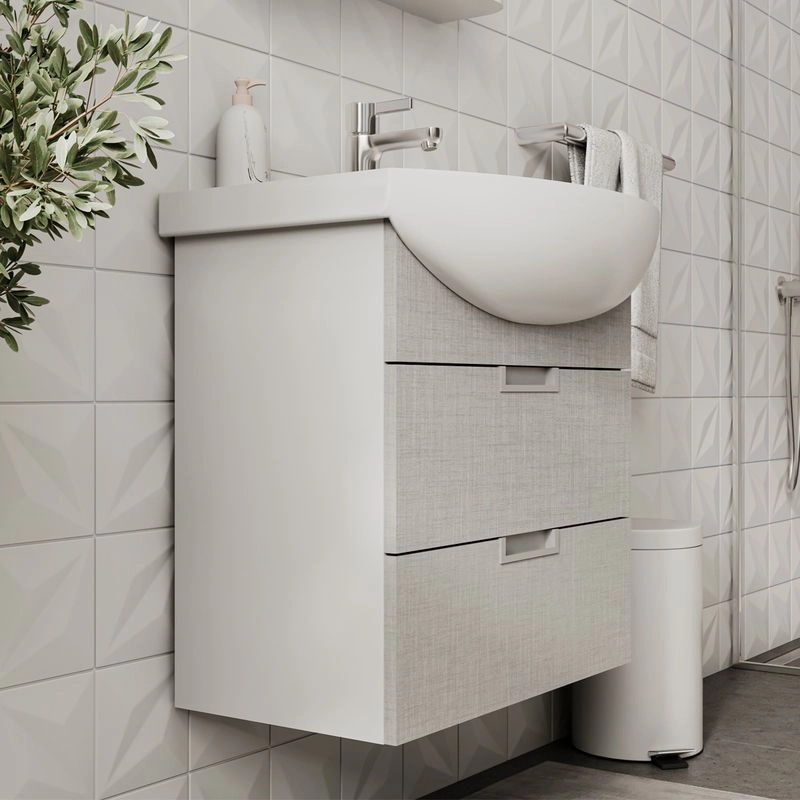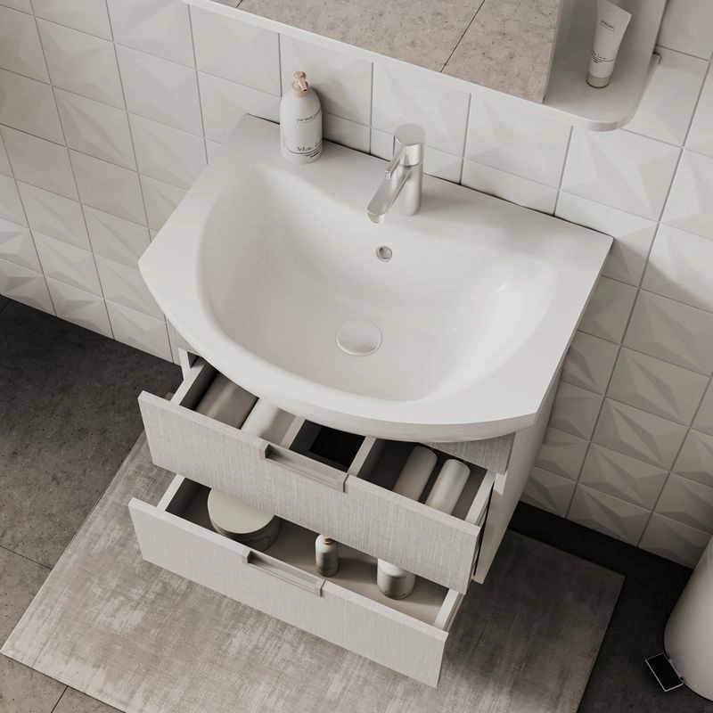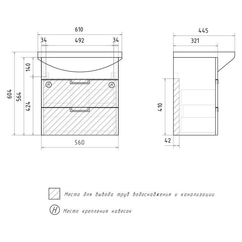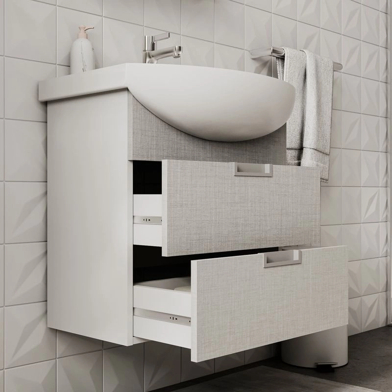 Подвесная тумба с двумя выдвижными ящиками. Фасады и корпус тумбы изготовлены из ЛДСП.