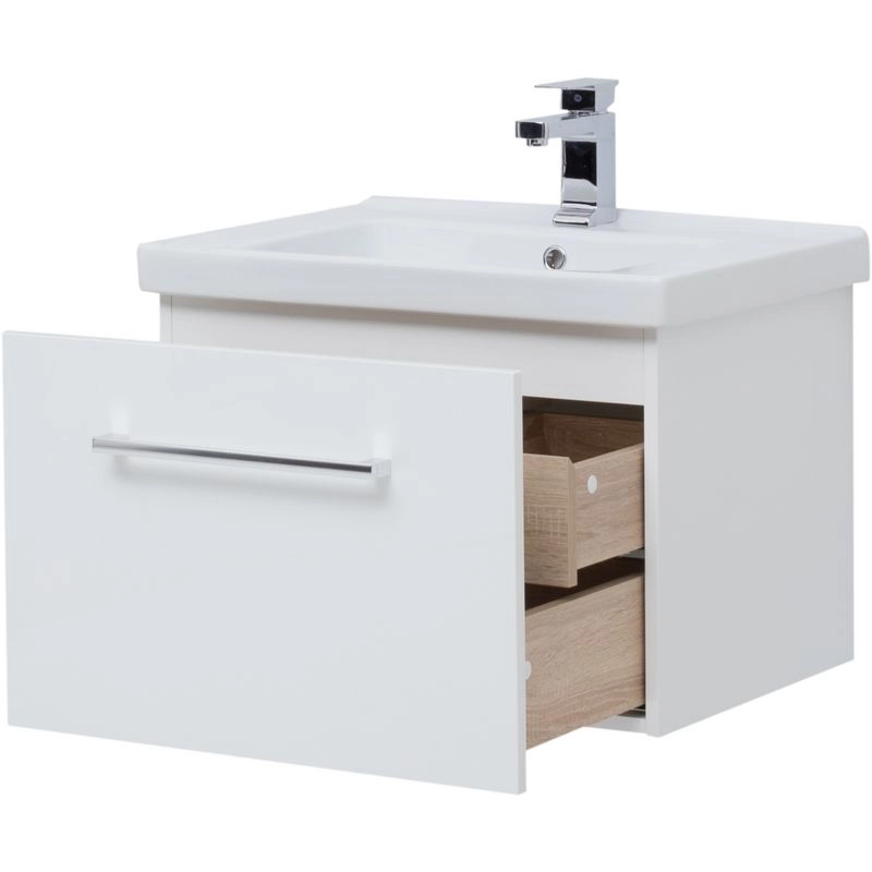 Встроенный органайзер в верхнем ящике. Покрытие Краска MILESI (Италия) глянец. Главное преимущество — много места для хранения. С порядком в ящиках Вам помогут наши практичные органайзеры. У дверей система плавного закрывания Доводчики Hettich. Тумба Big Inn в отделке белый глянец, отделка внутренних ящиков — дуб сонома.