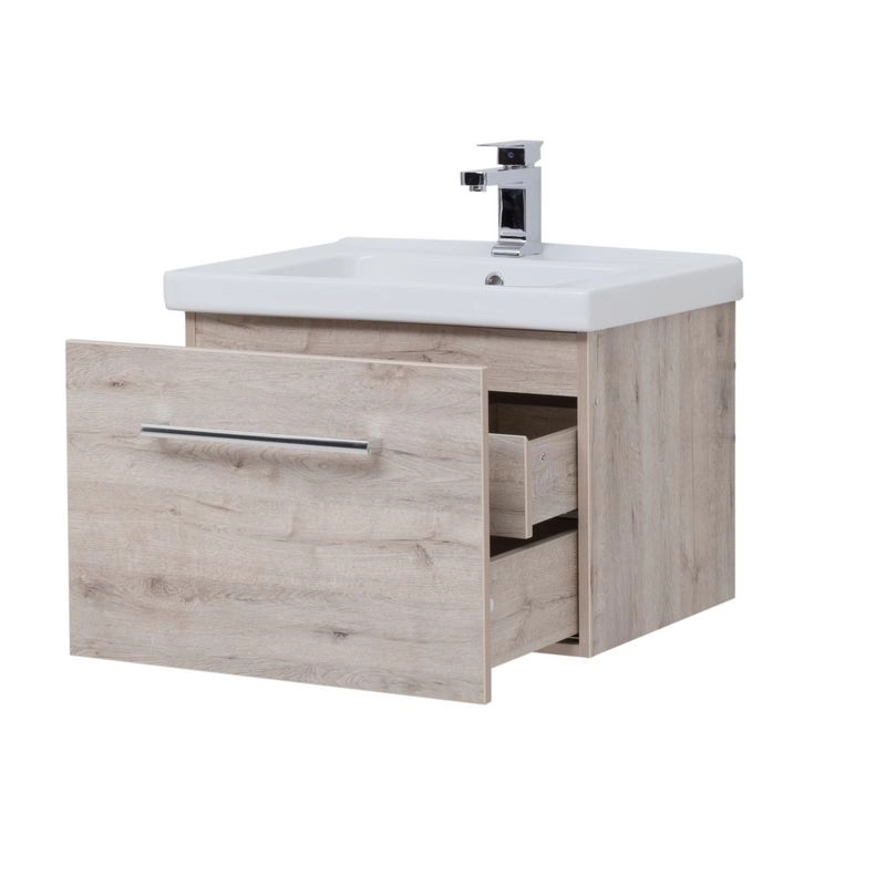 Встроенный органайзер в верхнем ящике. Покрытие матовое Эко шпон. Влагостойкий МДФ корпус и фасад. Главное преимущество — много места для хранения. С порядком в ящиках Вам помогут наши практичные органайзеры. У дверей система плавного закрывания Доводчики Hettich. Тумба Big Inn в цвете дуб кантри, отделка внутренних ящиков — дуб сонома. Гарантия 2 года.