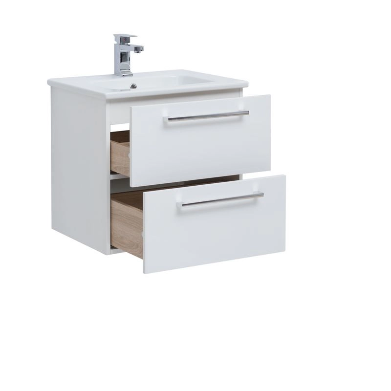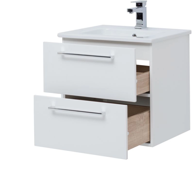 Доводчики Hettich. встроенный органайзер в верхнем ящике. Покрытие Краска MILESI (Италия) глянец. Тумба GIO белый глянец, верхний ящик имеет встроенный органайзер. Внутренняя отделка ящика – дуб сонома.