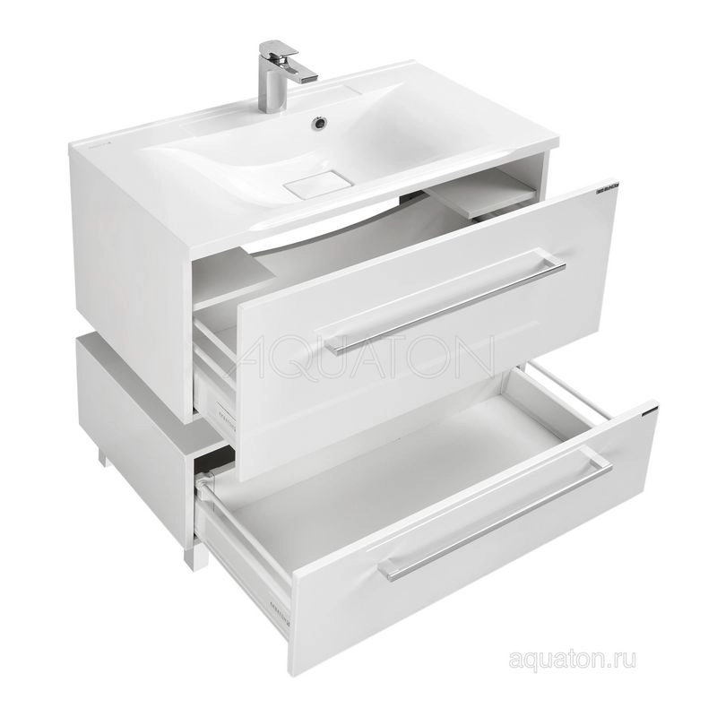 Aquaton 1A126901MA010 Центром коллекции является тумба с удобной раковиной из литого мрамора - Премьер 100. Тумба выпускается с одним и двумя ящиками со встроенной системой плавного закрывания. На дне ящиков расположен антискользящий коврик. Тумба с одним ящиком дополнительно оснащена полочками с рейлингом, расположенными над ящиком. Зеркальный шкаф, внутри которого расположены стеклянные полочки, оснащен подсветкой. Облегченный вариант комплектации - зеркало Отель 100 - с подсветкой и системой ANTI-STEAM. Дополнительно выпускается комод с ящиком, устанавливаемый на ножках. В навесном шкафу за фасадом расположены стеклянные полки и два выдвижных ящика для мелких предметов. При желании комплект с зеркалом можно дополнить стеклянной полкой. Комплектация: ручка - 1 навес - 2 ящик с сеткой ограждения - 1 Габариты ш*в*г (мм) 997*400*441.