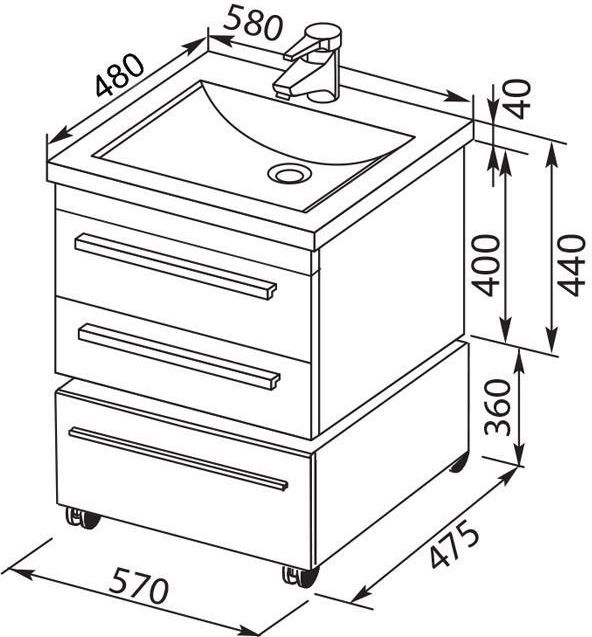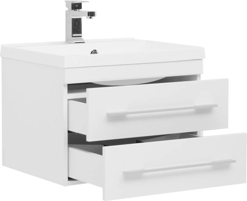 Навесная тумба Нота облегчает уборку благодаря отсутствию ножек и обеспечивает место для хранения бытовых средств в двух глубоких ящиках. Тумба представлена как часть набора мебели для ванной комнаты Акванет Нота 58, но может быть приобретена и отдельно. Дополните набор подкатной тумбой с выдвижным ящиком, которая одновременно может служить и зоной для хранения, и удобной подставкой.