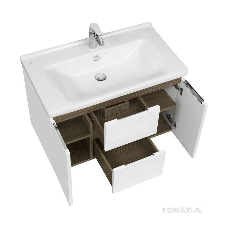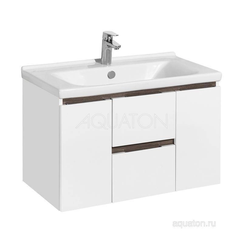 —Тумба под раковину AQUATON Рене 80 белый, грецкий орех 1A258601NRC80