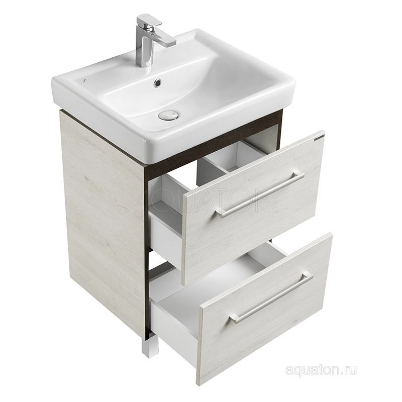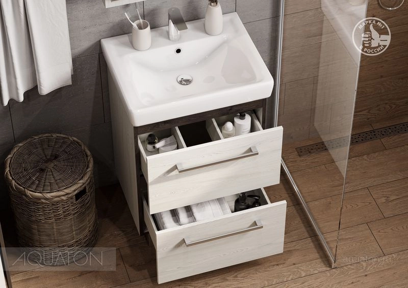 Подвесная тумба Ронда PRO 60 от AQUATON отличается сдержанным и лаконичным дизайном в духе минимализма. В приоритете - простые формы и функциональность. Весь корпус изготовлен из ламинированной, текстурированной влагостойкой ЛДСП в цвете дуб сомерсет. Конструкция верхнего ящика разделена на две секции, что очень удобно для хранения мелких предметов. Вместительный нижний ящик позволит спрятать более крупные вещи. Оба ящика установлены на надежные направляющие скрытого монтажа с доводчиками, которые обеспечивают его плавное и надежное закрывание. Тумбу украшают удобные ручки-рейлинги.
