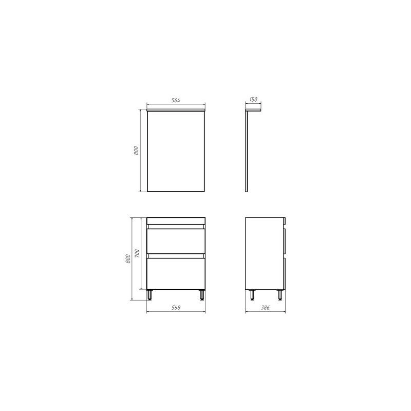 Напольная тумба с двумя выдвижными ящиками. В комплект входят хромированные ножки. Ручки интегрированы в фасад ящиков. Покрытие пленка