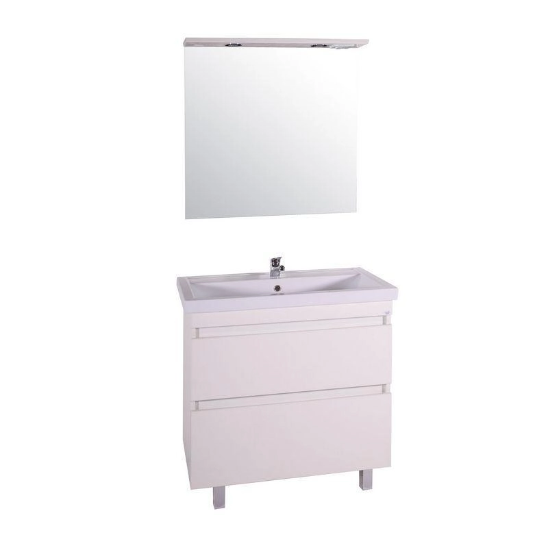 Напольная тумба с двумя выдвижными ящиками. В комплект входят хромированные ножки. Ручки интегрированы в фасад ящиков. Покрытие пленка