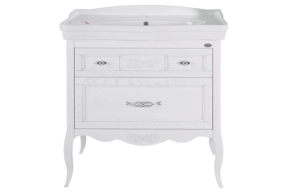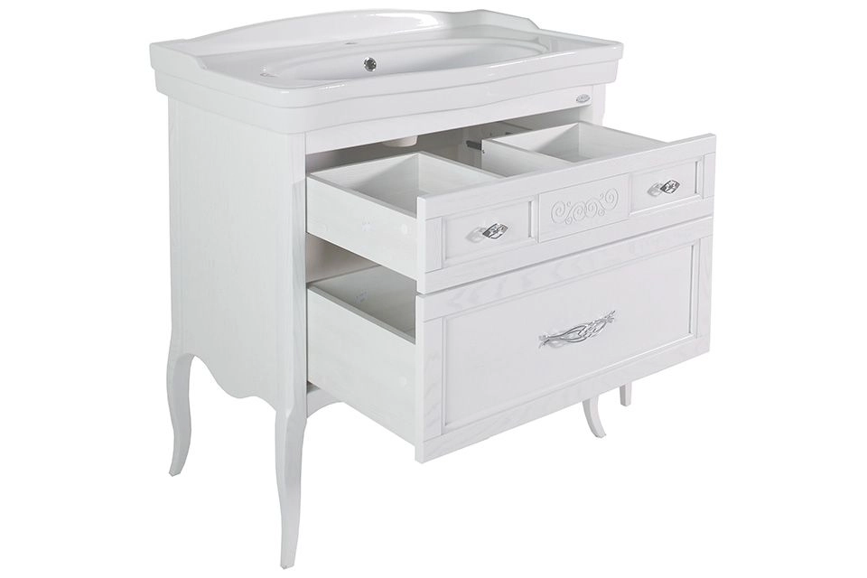 Тумба под раковину ASB-Woodline Модерн 85 Белый (патина серебро)