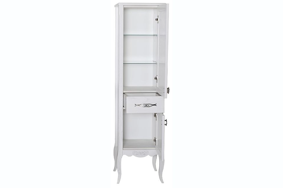 Напольная тумба с тремя выдвижными ящиками из массива ясеня выполнена в классическом стиле, что придает этому комплекту для ванной комнаты ощущение духа времени, основательности и покоя. Ящики полного выдвижения, оснащены изящной фурнитурой.