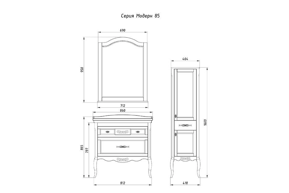 —Тумба под раковину ASB-Woodline Модерн 85 Белый (патина серебро)