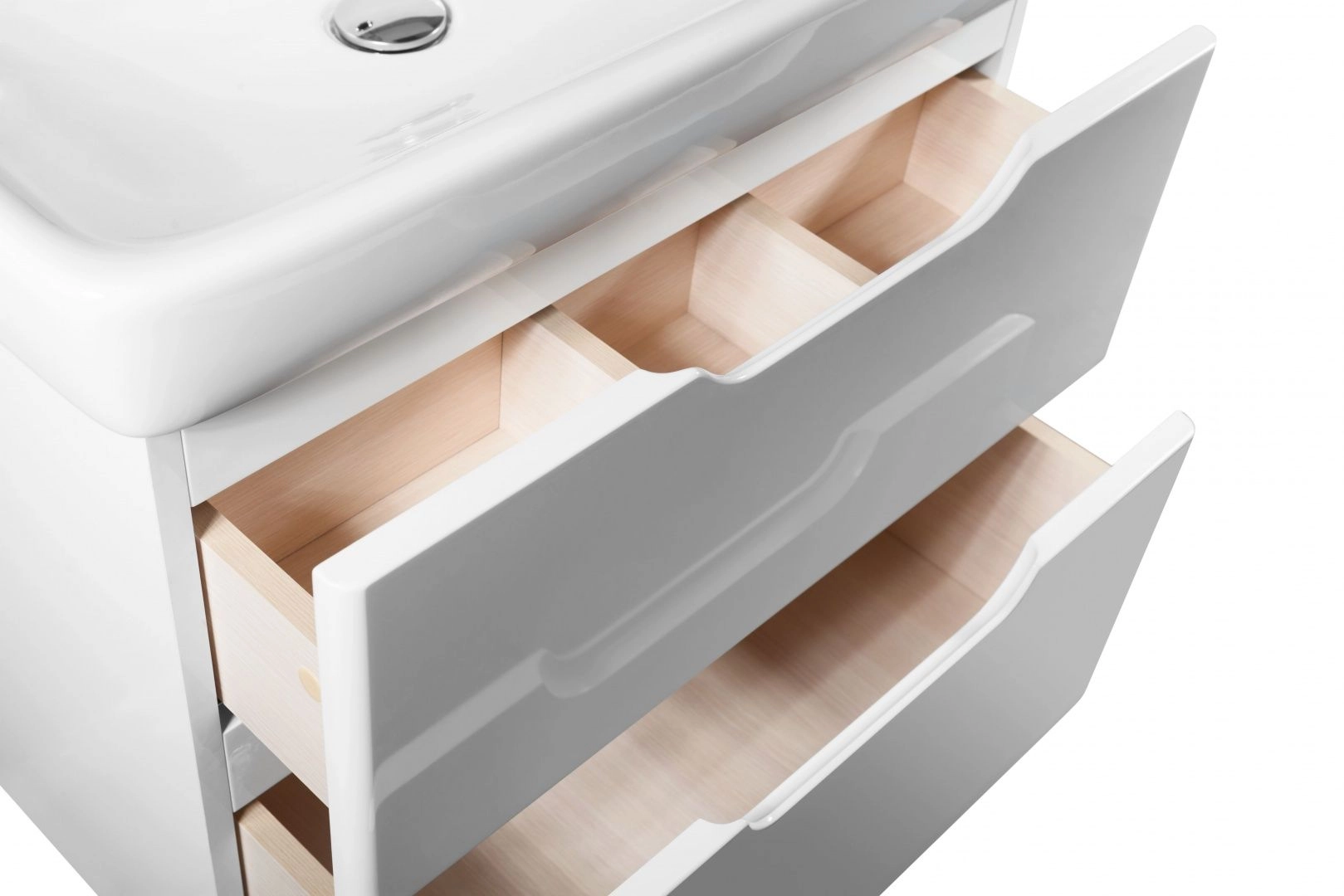 Подвесная коллекция Q под легендарный умывальник Dreja Q Строгий минимализм, лаконичный дизайн, глянцевая поверхность фасада, идеальное качество покраски.Фурнитура доводчики Hettich Доп. Функции органайзер Система хранения с ящиками