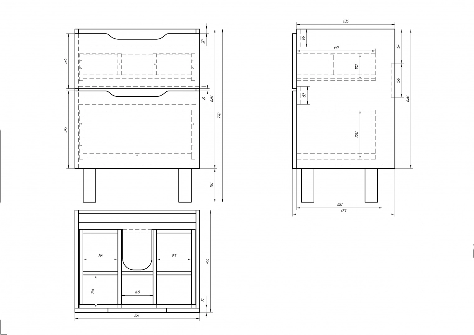 Напольная классическая коллекция в 4-х размерах с 2-мя выдвижными ящиками с доводчиками Hettich