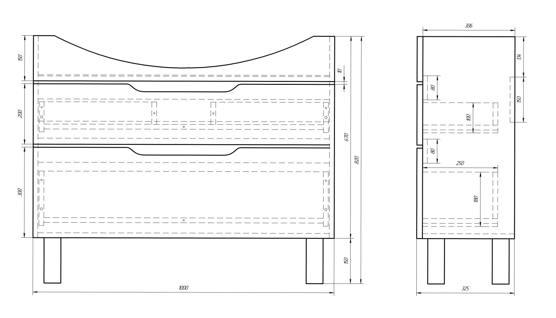 Напольная классическая коллекция в 4-х размерах с 2-мя выдвижными ящиками с доводчиками Hettich