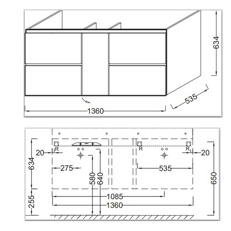 —Тумба под раковину Jacob Delafon SOPRANO EB1332-E10 136 см квебекский дуб