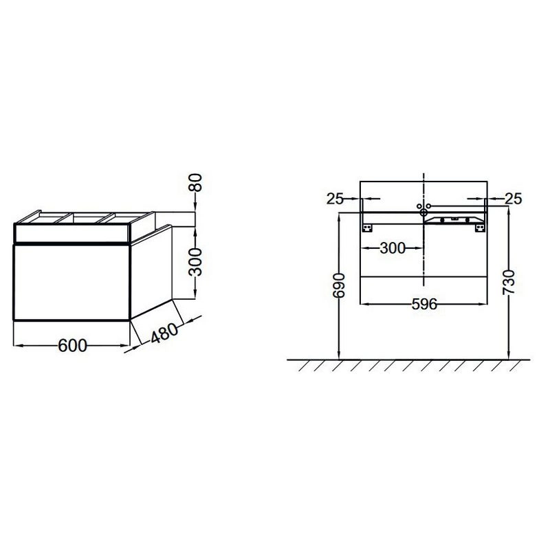 КОЛЛЕКЦИЯ :TERRACE РАЗМЕРЫ :60 x 48 x 38 см ВЕС :23 кг УСТАНОВКА : Подвесная ТИП МЕБЕЛИ: 1 выдвижной ящик для аксессуаров из цельного дерева и 1 выдвижной ящик с механизмом «плавное закрывание» ВНУТРЕННЯЯ СИСТЕМА ХРАНЕНИЯ: : 1 ящичек для аксессуаров с мех