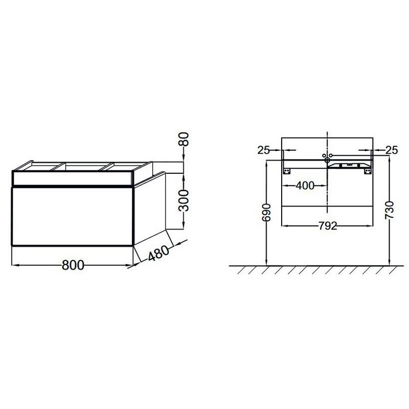 КОЛЛЕКЦИЯ :TERRACE РАЗМЕРЫ :80 x 48 x 38 см ВЕС :25 кг УСТАНОВКА : Подвесная ТИП МЕБЕЛИ: 1 выдвижной ящик для аксессуаров из цельного дерева и 1 выдвижной ящик с механизмом «плавное закрывание» ВНУТРЕННЯЯ СИСТЕМА ХРАНЕНИЯ: : 1 ящичек для аксессуаров с мех