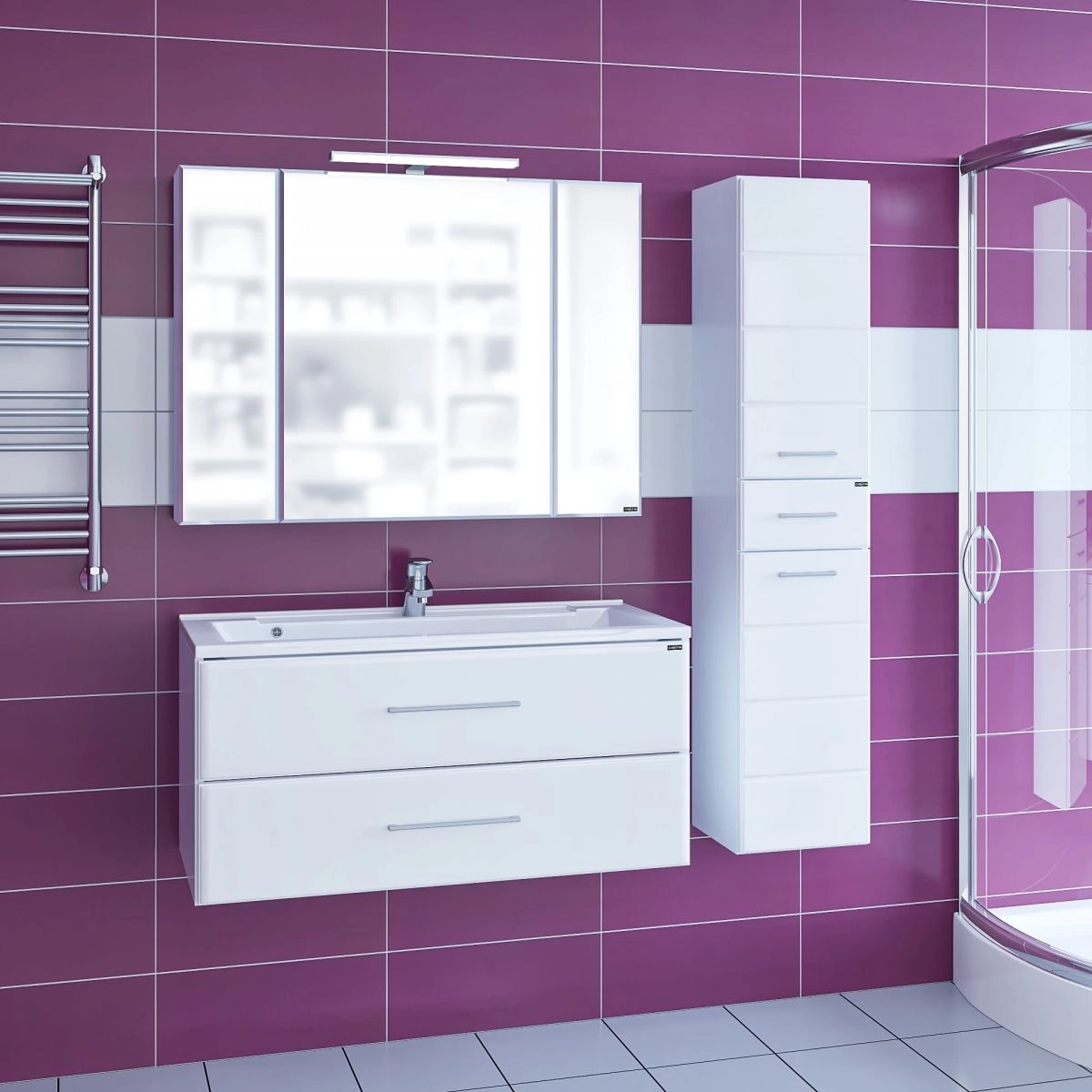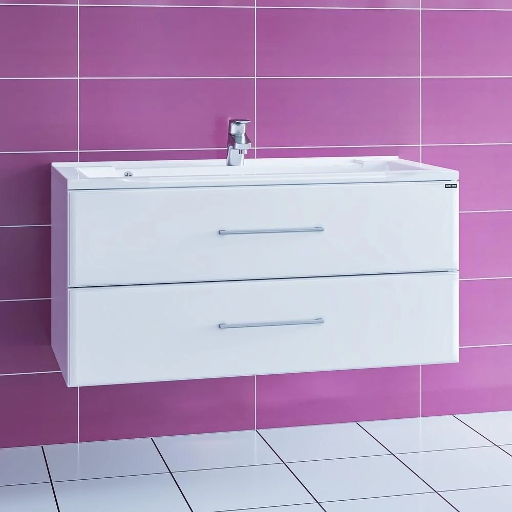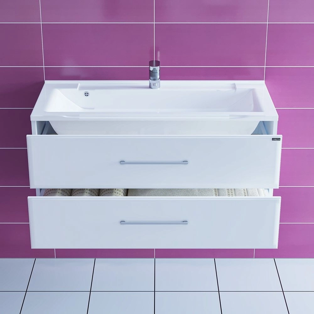Тумба под раковину СаНта Омега 100 207028, белая (ум. Elen100 литой мрамор) подвесная Материал корпуса ЛДСП. Материал Фасада МДФ. Покрытие пленка.