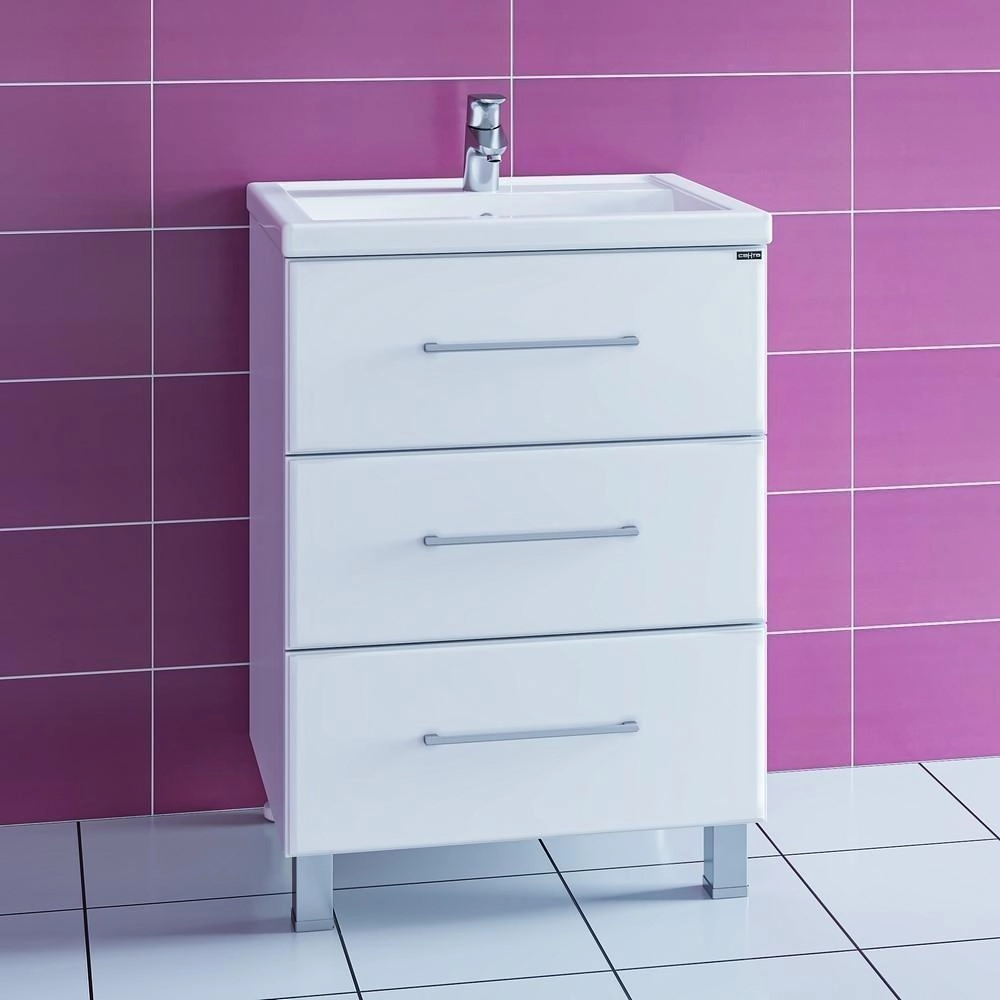 Тумба под раковину СаНта Омега 60 207046, напольная, цвет белый 3 ящ (ум. Фостер 60)