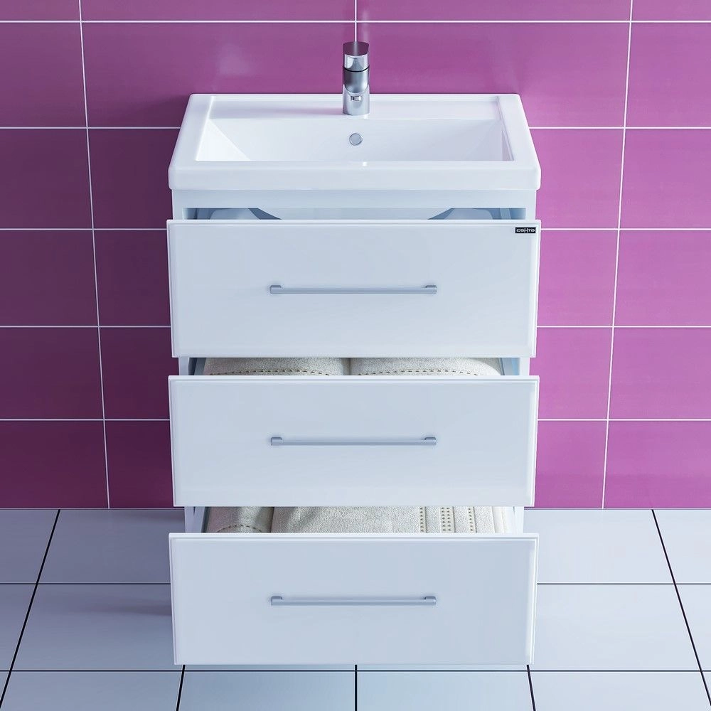 Тумба под раковину СаНта Омега 60 207046, напольная, цвет белый 3 ящ (ум. Фостер 60) Материал корпуса ЛДСП. Материал Фасада МДФ. Покрытие пленка.