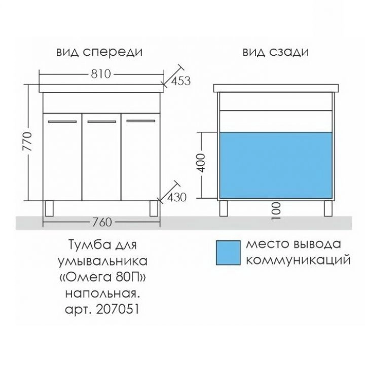 —Тумба под раковину СаНта Омега-80, 207051, 3 двери, напольная, белый (ум. Фостер 80)