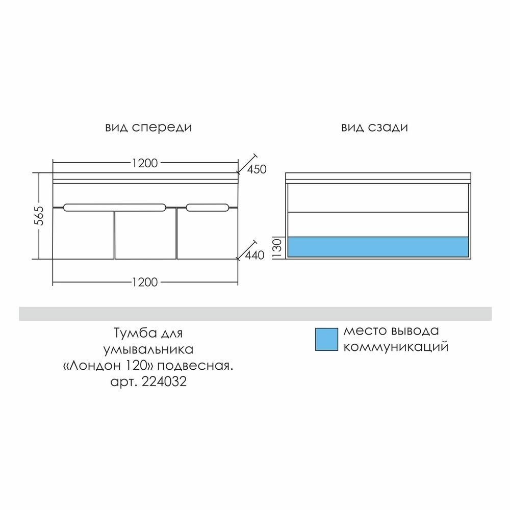 Тумба для умывальника подвесная "Лондон 120" (под умывальник Сириус 120) Материал корпуса МДФ. Материал Фасада МДФ. Покрытие пленка.