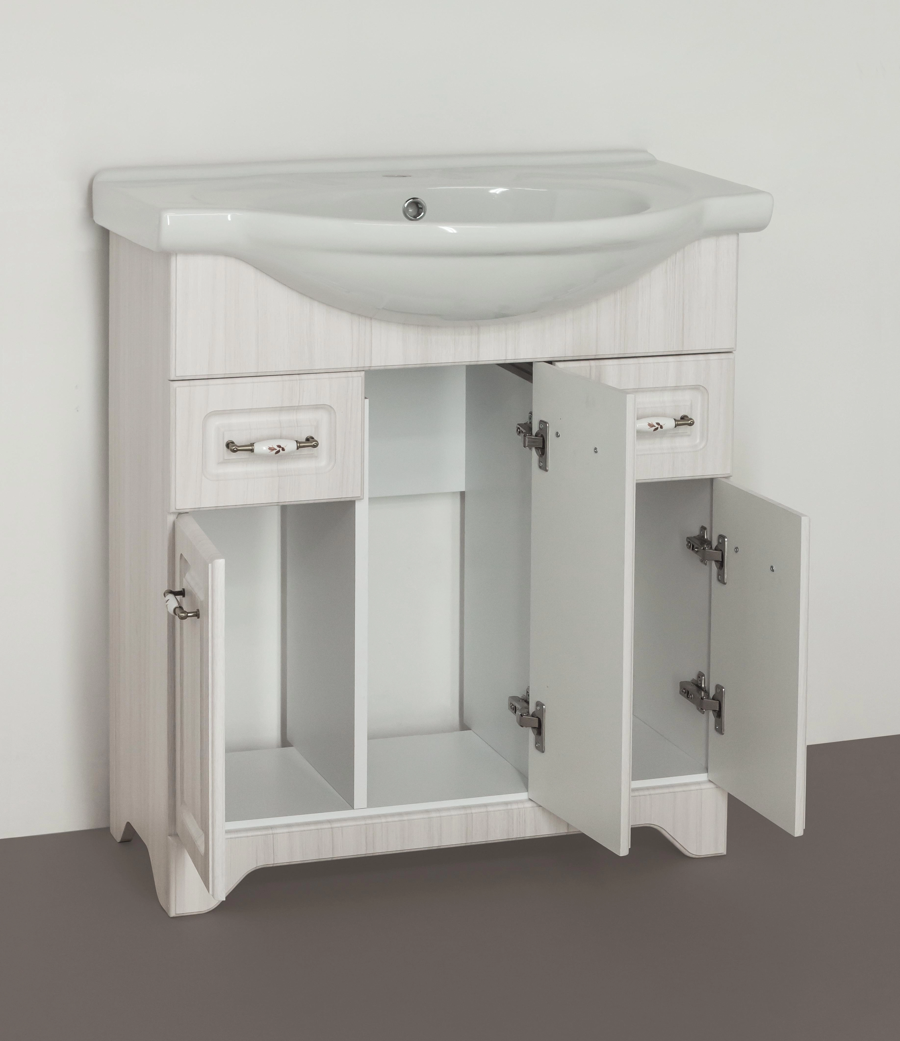 Тумба под раковину Style Line Elfante Олеандр-2 75 (2ящ.) напольная с дверками, рельеф пастель