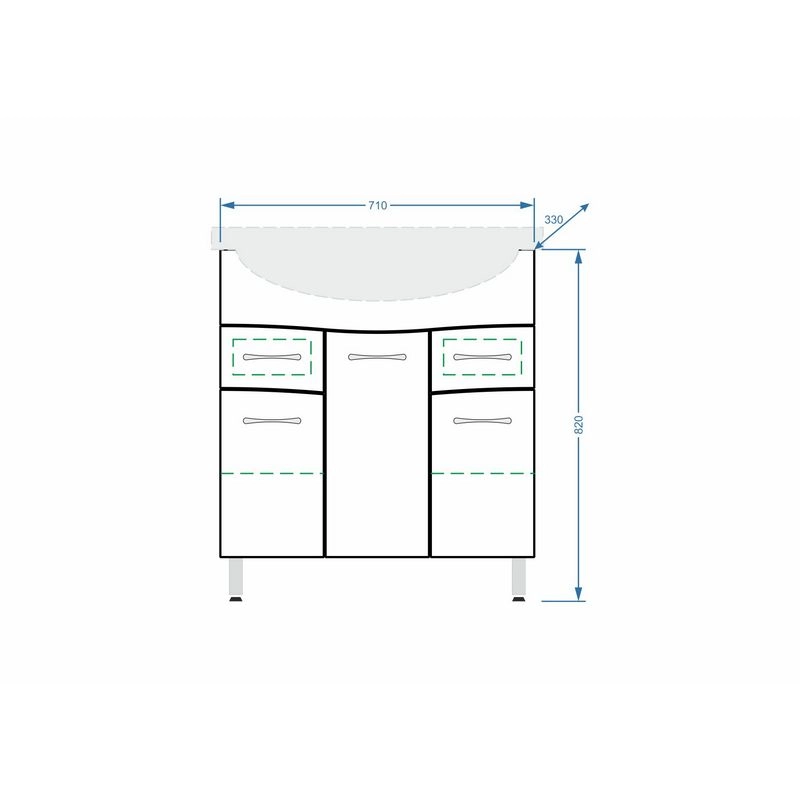 —Тумба под умывальник Stella Polar Волна 75-8, 2 ящ., Байкал 75