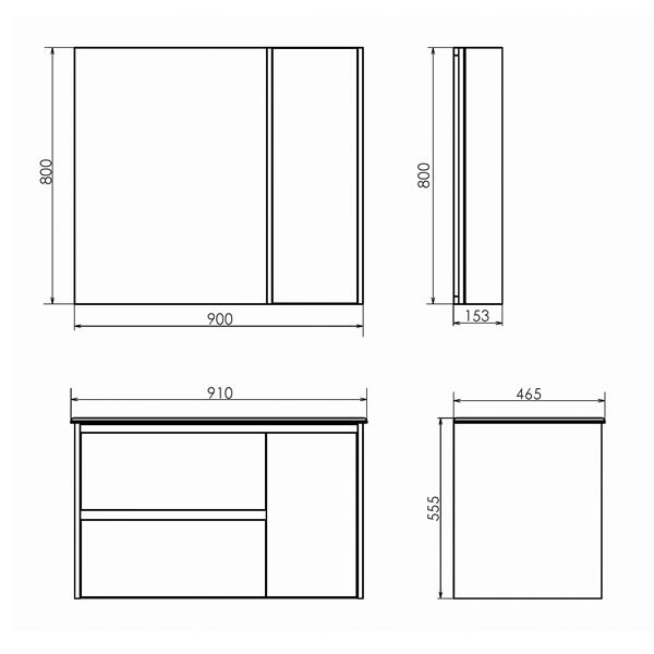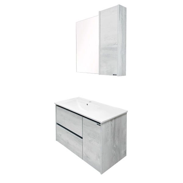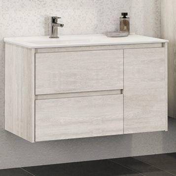 Подвесная тумба с двумя выдвижными ящиками и одной распашной створкой.
