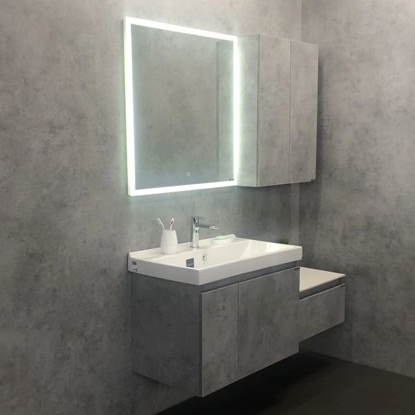 . Фасады и корпус из влагостойкого ЛДСП цвета бетон светлый.
