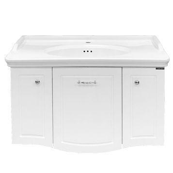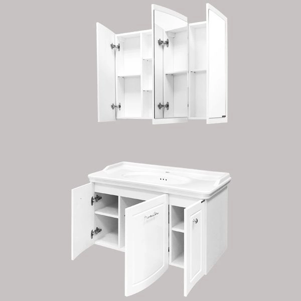 Тумба-умывальник с тремя распашными створками, оснащенными системой плавного закрывания.