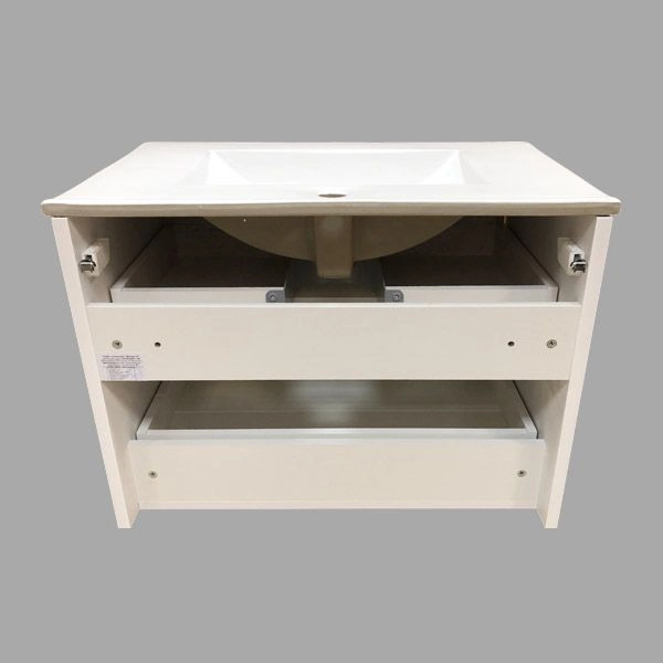 Подвесная тумба-умывальник с двумя выдвижными ящиками оснащенными системой Push-to-Open (открытие при нажатии).