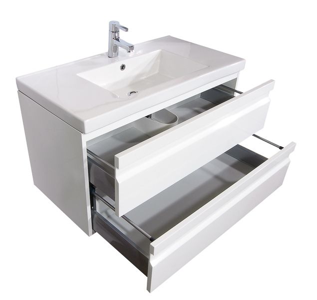 Используются два выдвижных ящика с функцией полного выдвижения и плавного, бесшумного закрывания фурнитура Firmax.