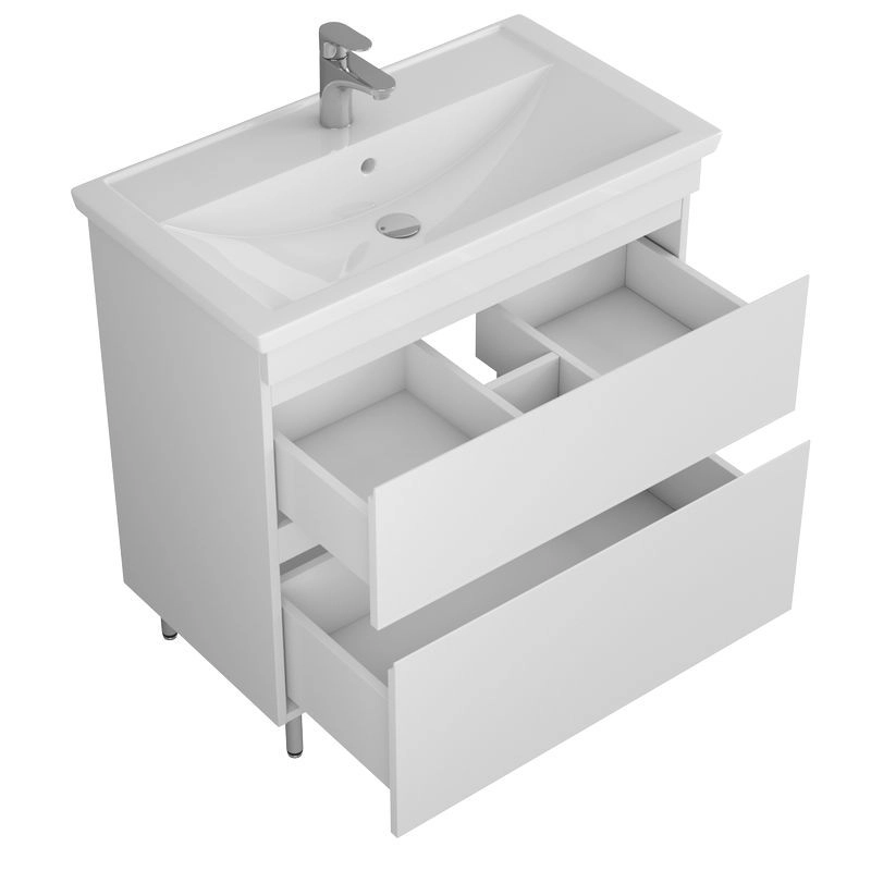 Материал корпуса : Влагостойкое ЛДСП. МДФ. Покрытие корпуса : Покрытие фасада : ПВХ. Цвет белый глянец. Система хранения с ящиками. Механизм доводчика.