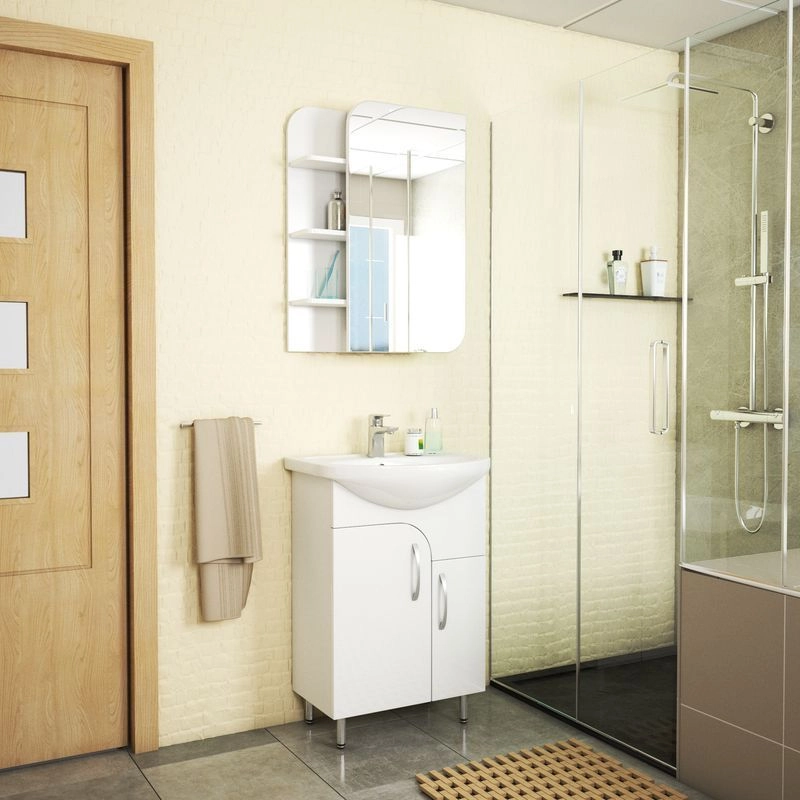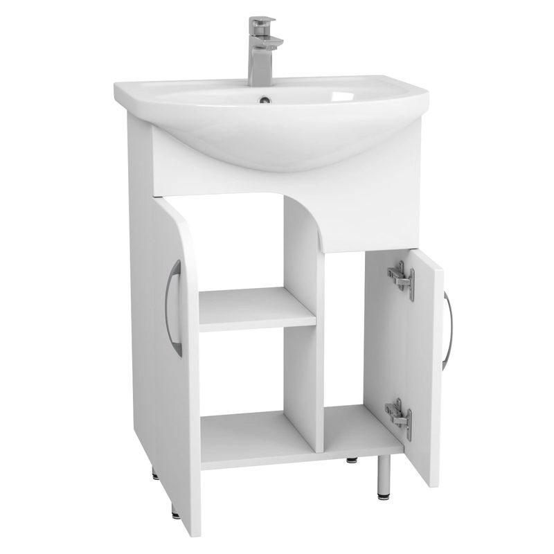 Материал корпуса : Влагостойкое ЛДСП. МДФ. Покрытие корпуса : Покрытие фасада : ПВХ. Цвет белый глянец. Система хранения с полками/ с дверками. Механизм доводчика.