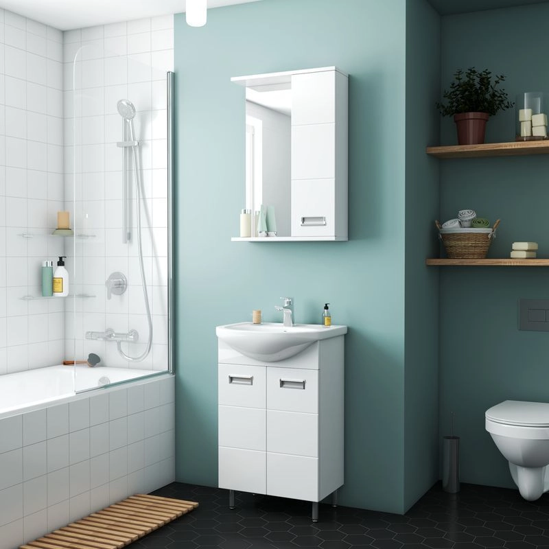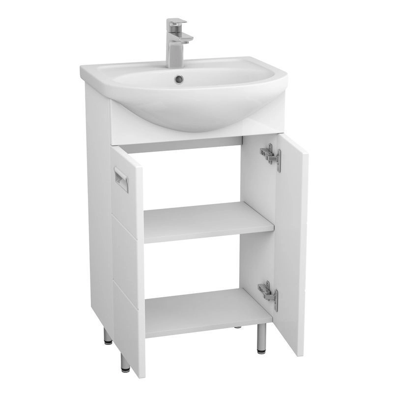 Материал корпуса : Влагостойкое ЛДСП. МДФ. Покрытие корпуса : Покрытие фасада : ПВХ. Цвет белый глянец. Система хранения с полками/с дверками. Механизм доводчика.