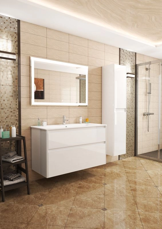 Материал корпуса влагостойкое ЛДСП. Материал фасада МДФ. Покрытие корпуса эмаль. Покрытие фасада эмаль. Цвет белый/глянец .Система хранения с ящиками. Механизм доводчика. В комплекте: крепления/организация пространства.