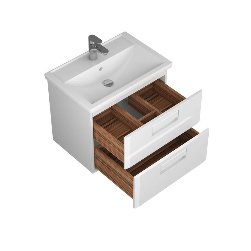 Материал корпуса влагостойкое ЛДСП. Материал фасада МДФ. Покрытие корпуса эмаль. Покрытие фасада эмаль. Цвет белый/глянец .Система хранения с ящиками. Механизм доводчика. В комплекте: крепления/организация пространства.