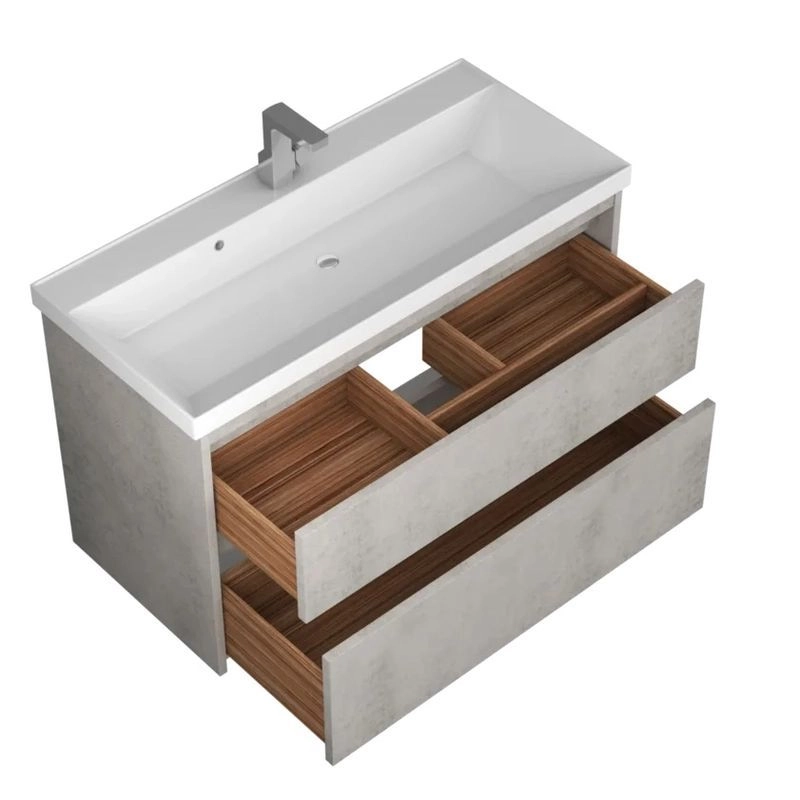 Материал корпуса МДФ. Материал фасада МДФ. Покрытие корпуса ПВХ. Покрытие фасада ПВХ. Цвет светлый камень/матовый .Система хранения с ящиками. Механизм доводчика. В комплекте: крепления/организация пространства.