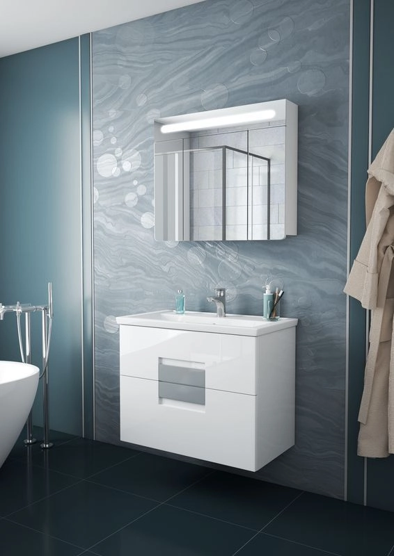Материал корпуса МДФ. Материал фасада МДФ. Покрытие корпуса эмаль. Покрытие фасада эмаль. Цвет белый/глянец .Система хранения с ящиками. Механизм доводчика. В комплекте: крепления/организация пространства.