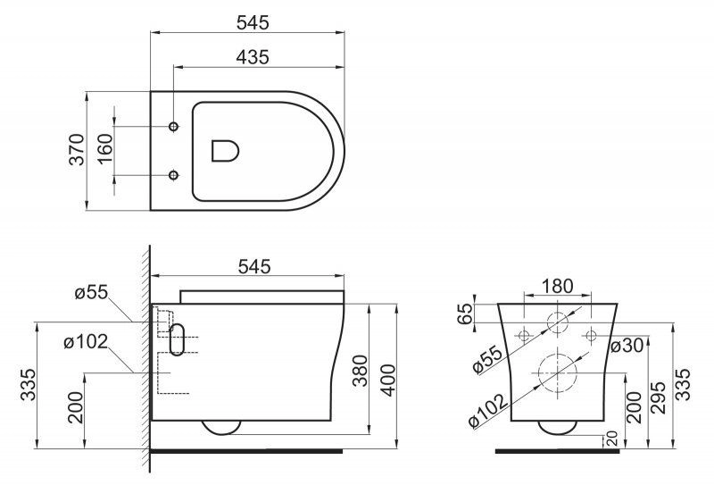 Сиденье приобретается отдельно• Габаритные размеры: 545х370х380 мм• Безободковая конструкция унитаза
