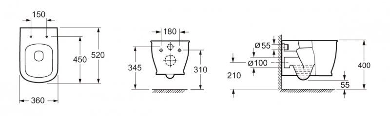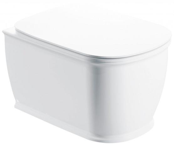 * открытый борт (безободковый); * слив по всему периметру чаши унитаза.