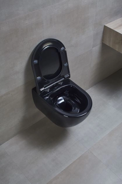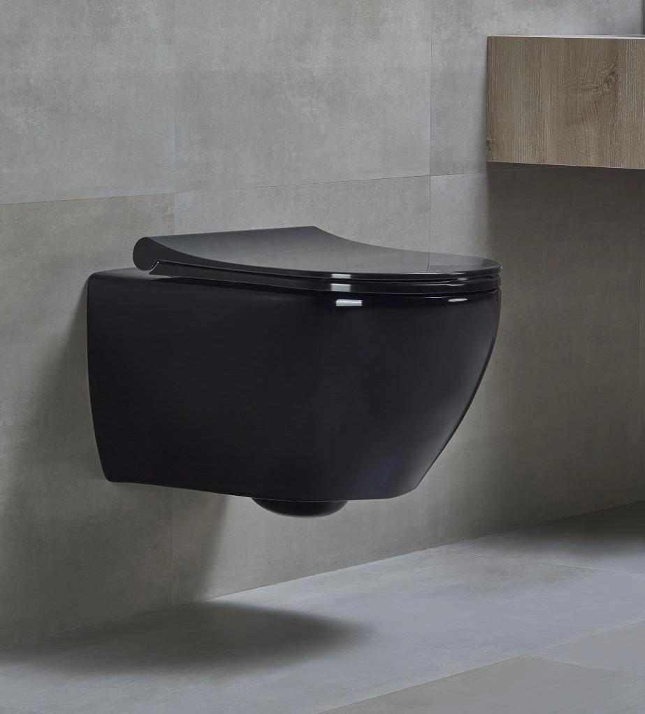 Ширина, см 35,5. Длина, см 53. Межосевое расстояние под крепежные шпильки 18 СМ. Организация смывающего потока каскадный слив. Система антивсплеск . Цвет черный. Сиденье с микролифтом Быстросъемное . антигрязевое покрытие, антибактериальное покрытие