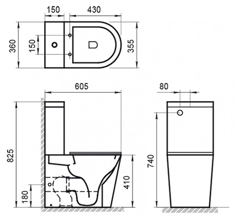 Сиденье и бачок приобретается отдельно•Габаритные размеры: 605x360x825• Безободковая конструкция унитаза