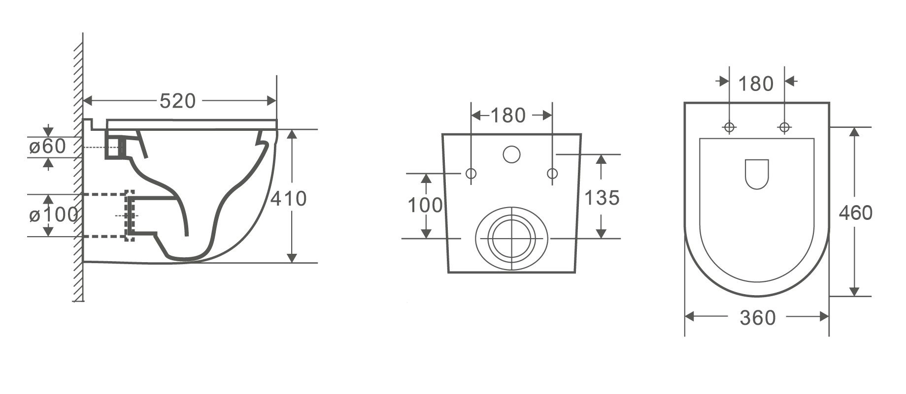 ГШВ 520*360*410. БЕЗОБОДКОВЫЙ RIMLESS матовый белый