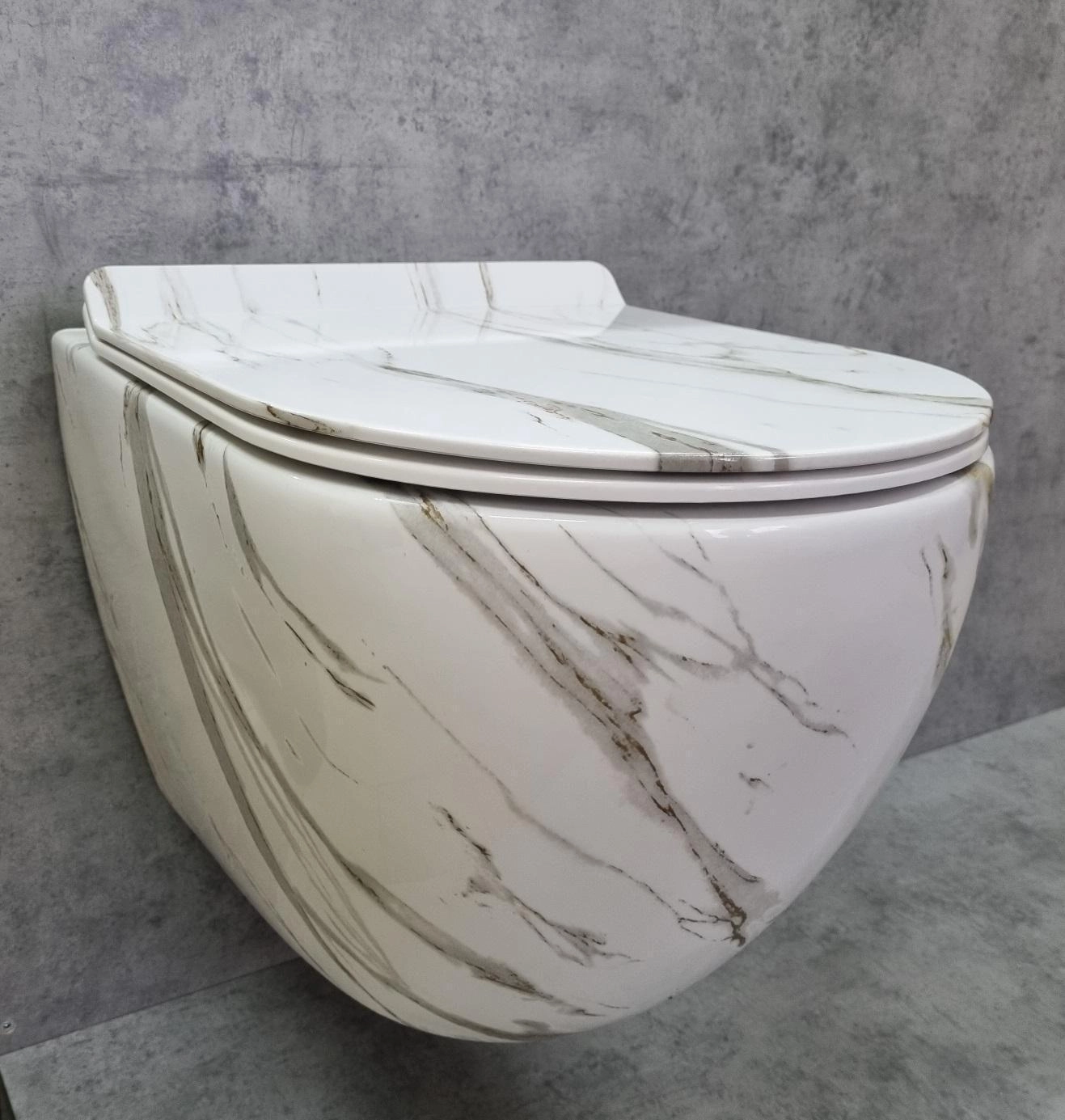УНИТАЗ ПОДВЕСНОЙ БЕЗОБОДКОВЫЙ RIMLESS *Белый мрамор
