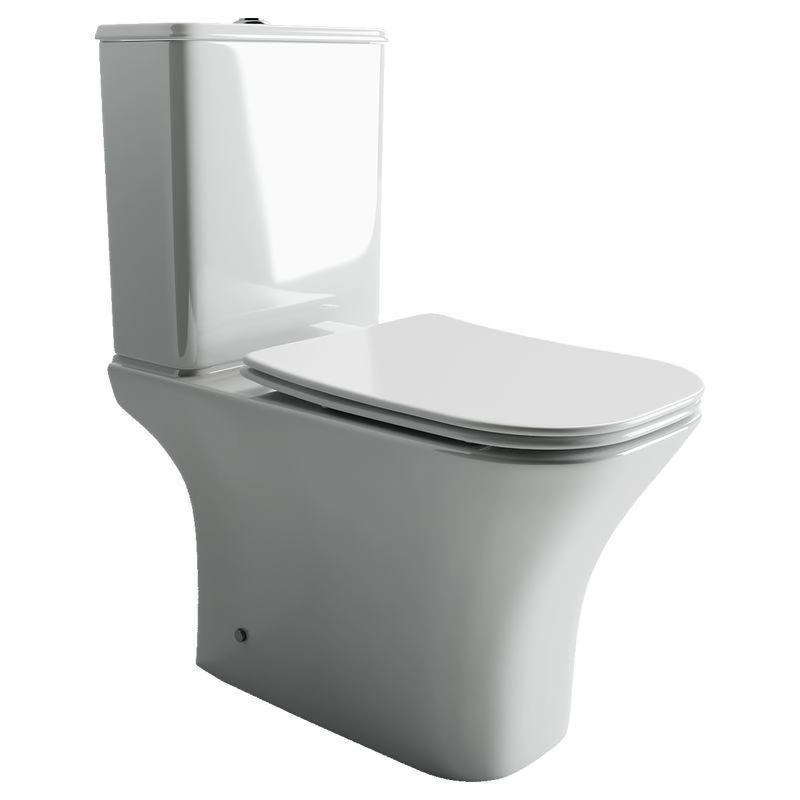 Напольный унитаз с бачком Alfa Rimless, двойной смыв 3/6 арматура, нижняя подводка глубокий смыв, горизонтальный (универсальный) выпуск, с крепежом, с ультра тонким сидением и крышкой с функцией плавного закрытия, дюропласт