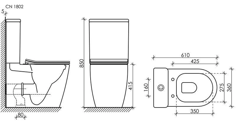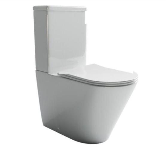 Напольный пристенный унитаз с бачком HighLight Rimless, двойной смыв 3/6 арматура, нижняя подводка глубокий смыв, горизонтальный (универсальный) выпуск, с крепежом, с ультра тонким сидением и крышкой с функцией плавного закрытия, дюропласт